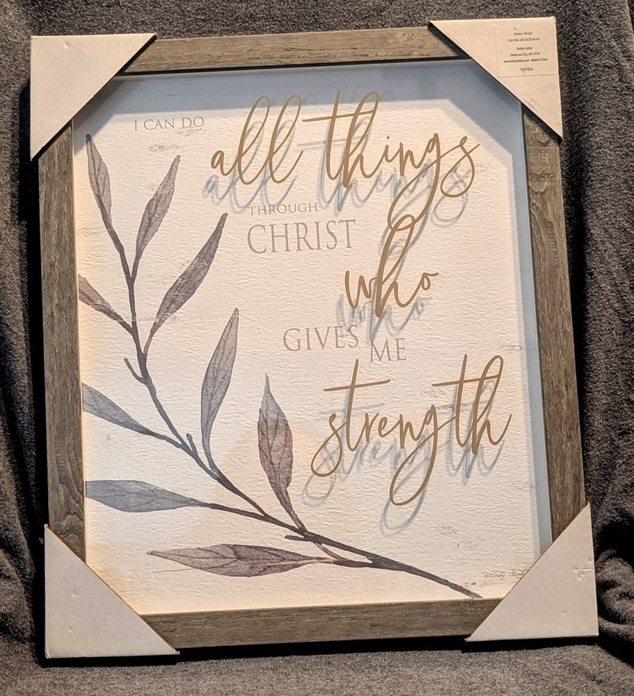 Looking for a great gift for mom this mothers day, or just some faith decor for your house look no further. This is one of 3 beautiful faith decor pictures available in this auction and would go great as a set. This package includes: 1 Beautiful wall decor featuring "I Can Do All Things"