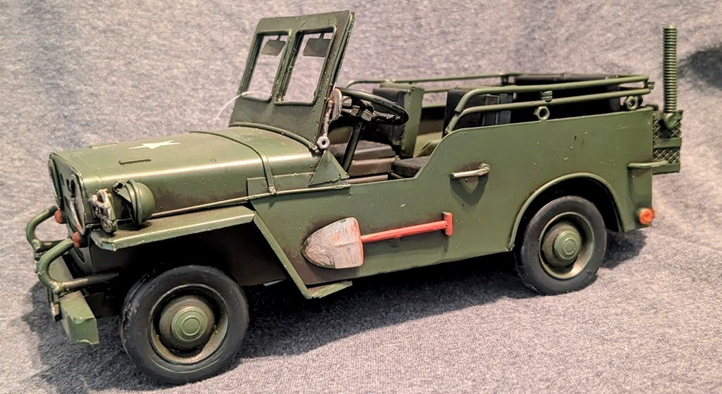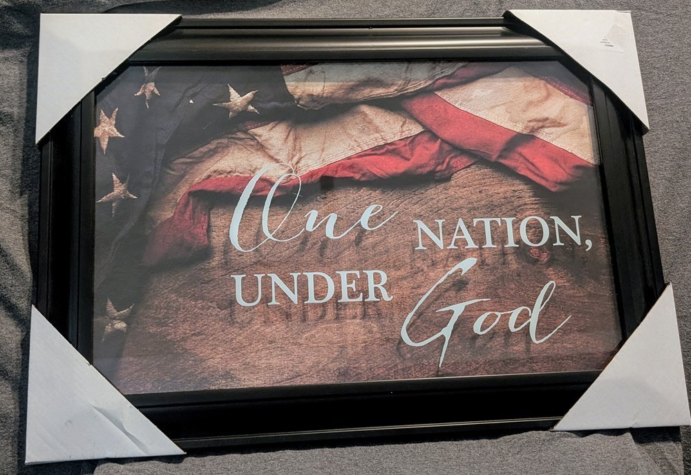 Calling all Patriots! This package is for you complete with: In God we Trust framed picture with American Flag Army Jeep to display anywhere in the home