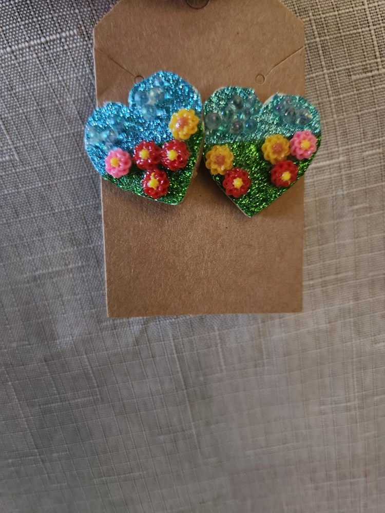 Unique Clouds, Flowers, Grass and Sky Earrings