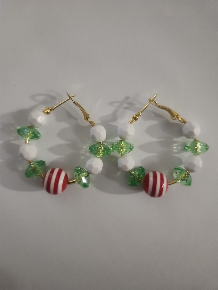 Peppermint, green and white (spearmint maybe) earrings that would go beautifully with any Christmas holiday outfits.