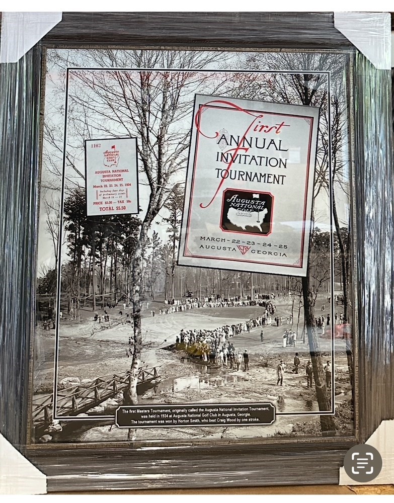 Augusta National is the home to The Master's every year in arguably the greatest tournament of the PGA season. This framed photo is to commemorate the very first Masters ever played at Augusta National.