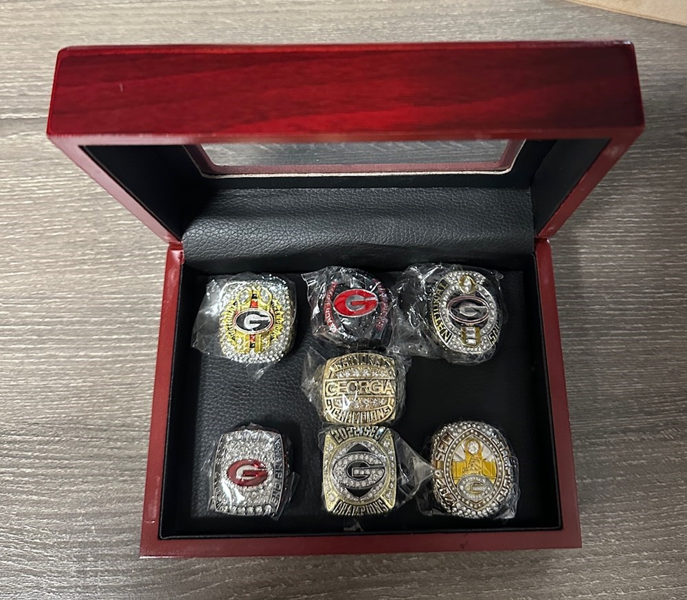 Take home a set of UGA Football commemorative rings signifying their accomplishments on the field over the years.