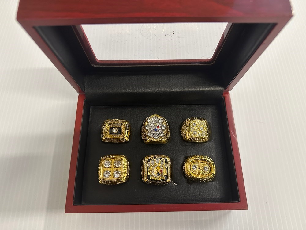 Pittsburgh Steelers Commemorative Ring set celebrates some of the accomplishments of the franchise over the course of the teams existence.