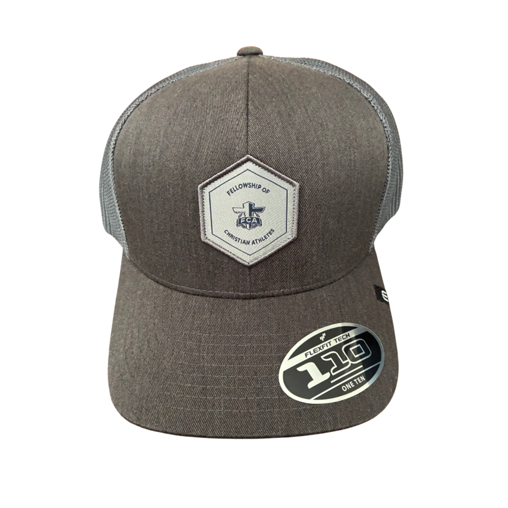 Grey Travis Matthew hat with patch supporting the Fellowship of Christian athletes. (SnapBack)