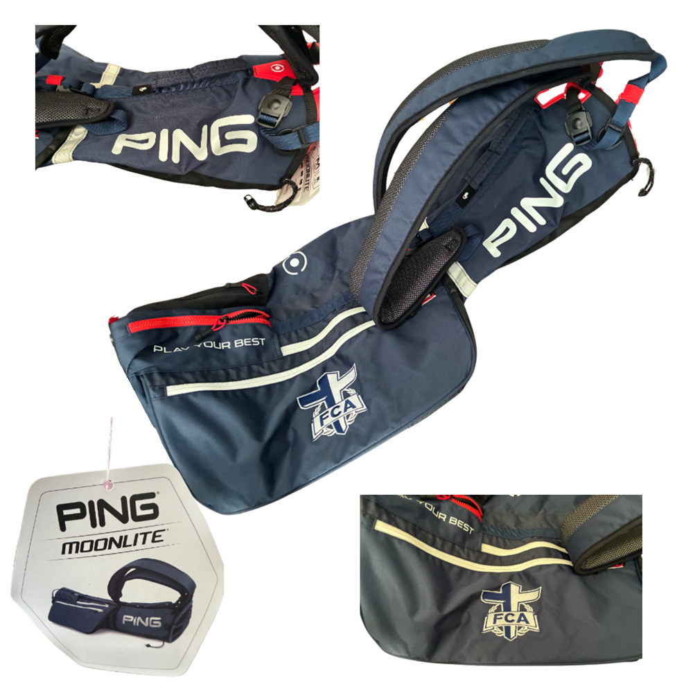 Beautiful red white and blue Ping Moonlite bag branded with FCA. Great lightweight bag for walking the course.