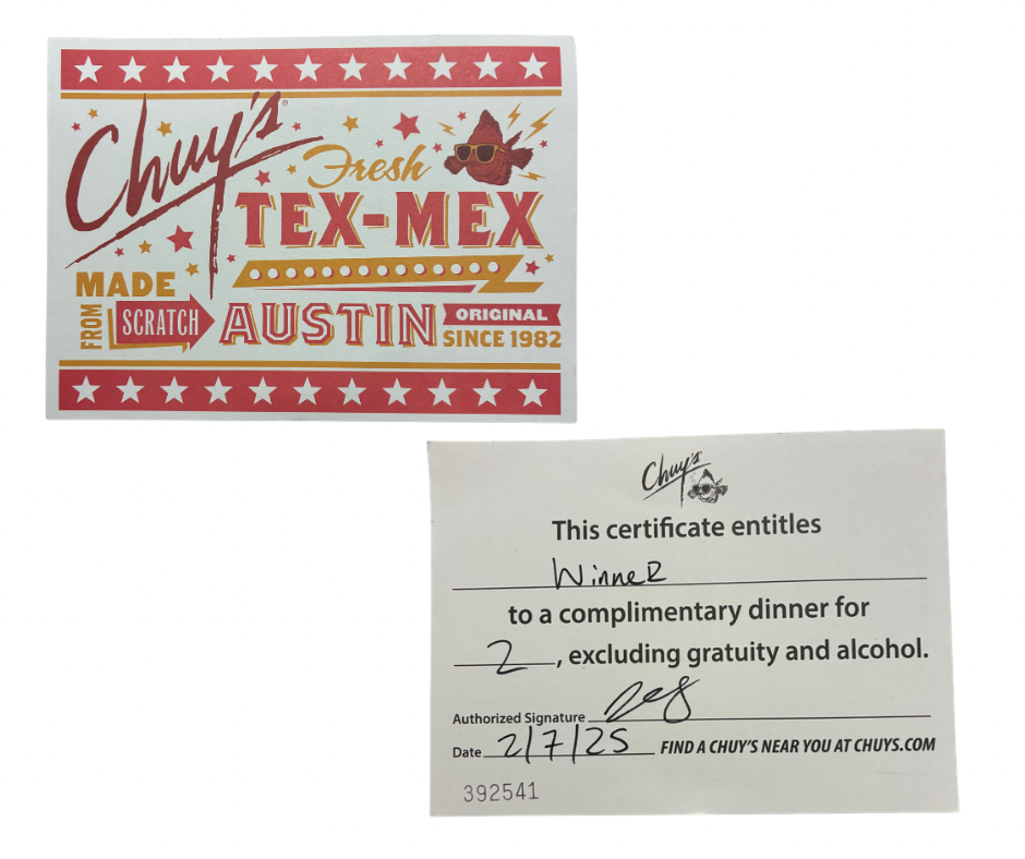 Everyone loves a great Mexican place to eat, look no further than Chuy’s in Kennesaw. Up on the hill close to Dicks Sporting goods and Costco convenient place to eat after shopping for a while. Use this for a date night as well. Package includes: One gift certificate good for two to eat.